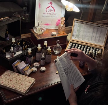 Es un curso básico introductorio al ARTE de la Perfumería, inspirado en los conocimientos y fórmulas de los antiguos perfumistas alquimistas (antes del desarrollo de la química moderna y sus compuestos aromáticos sintetizados en laboratorio).